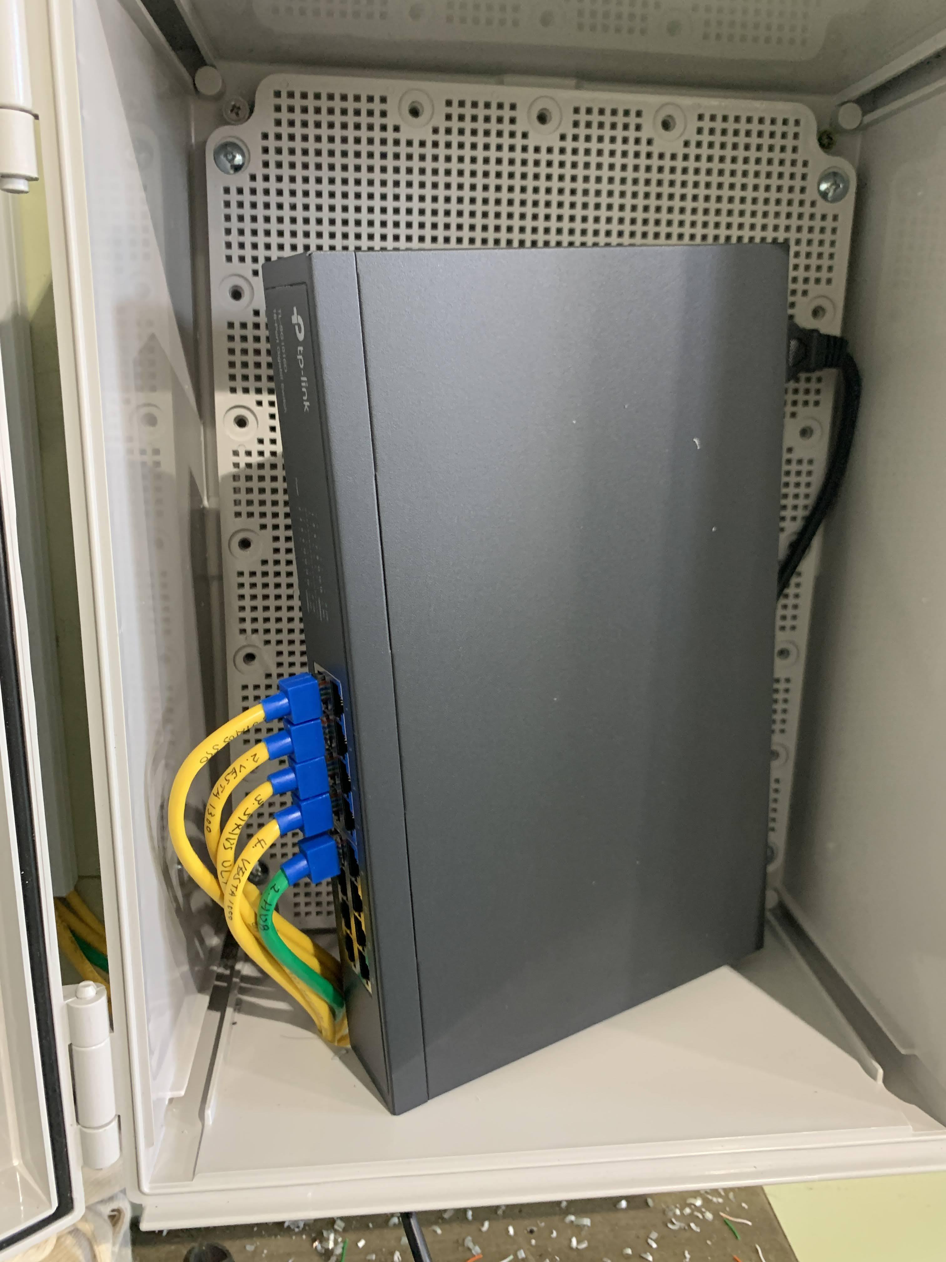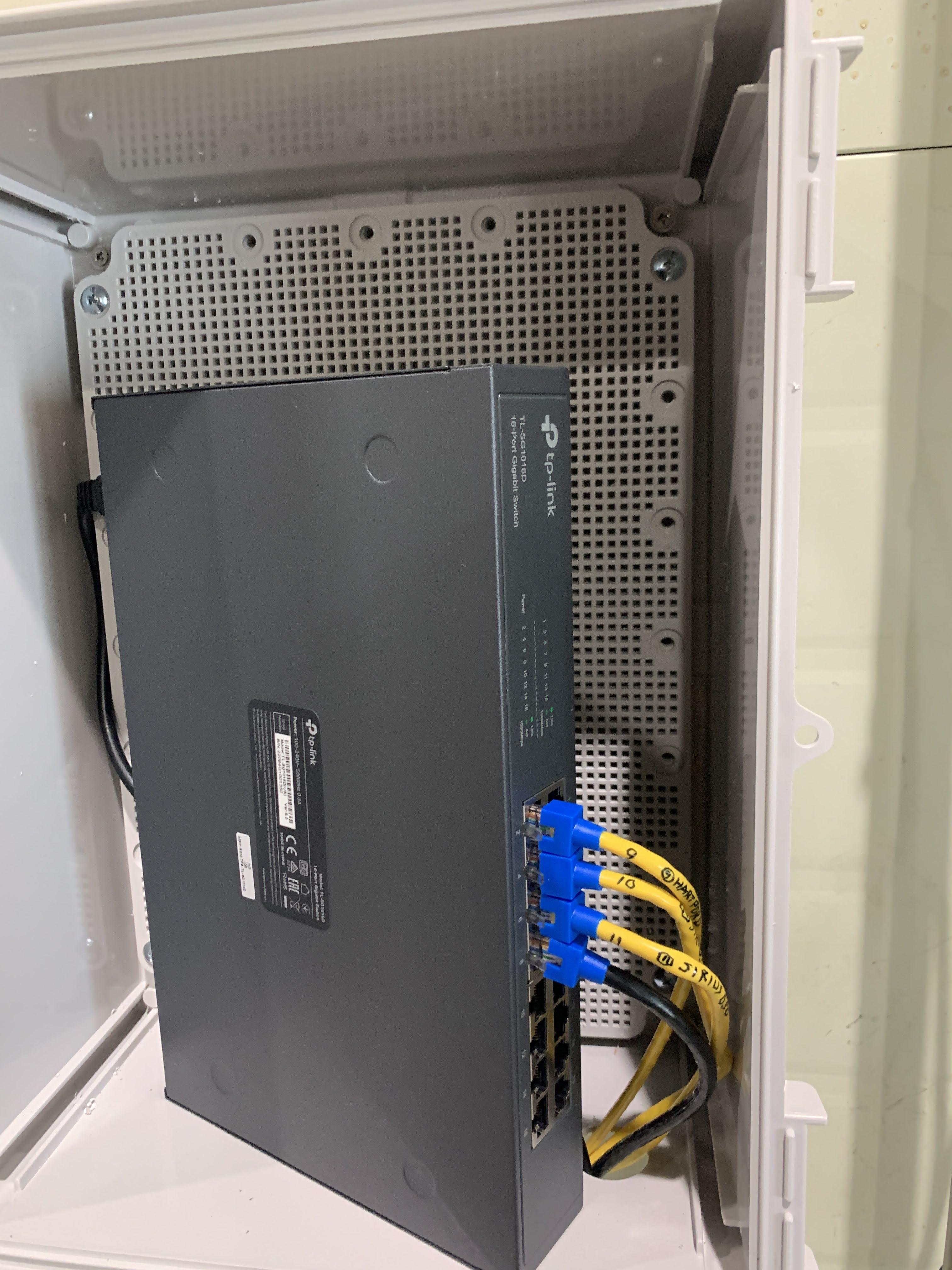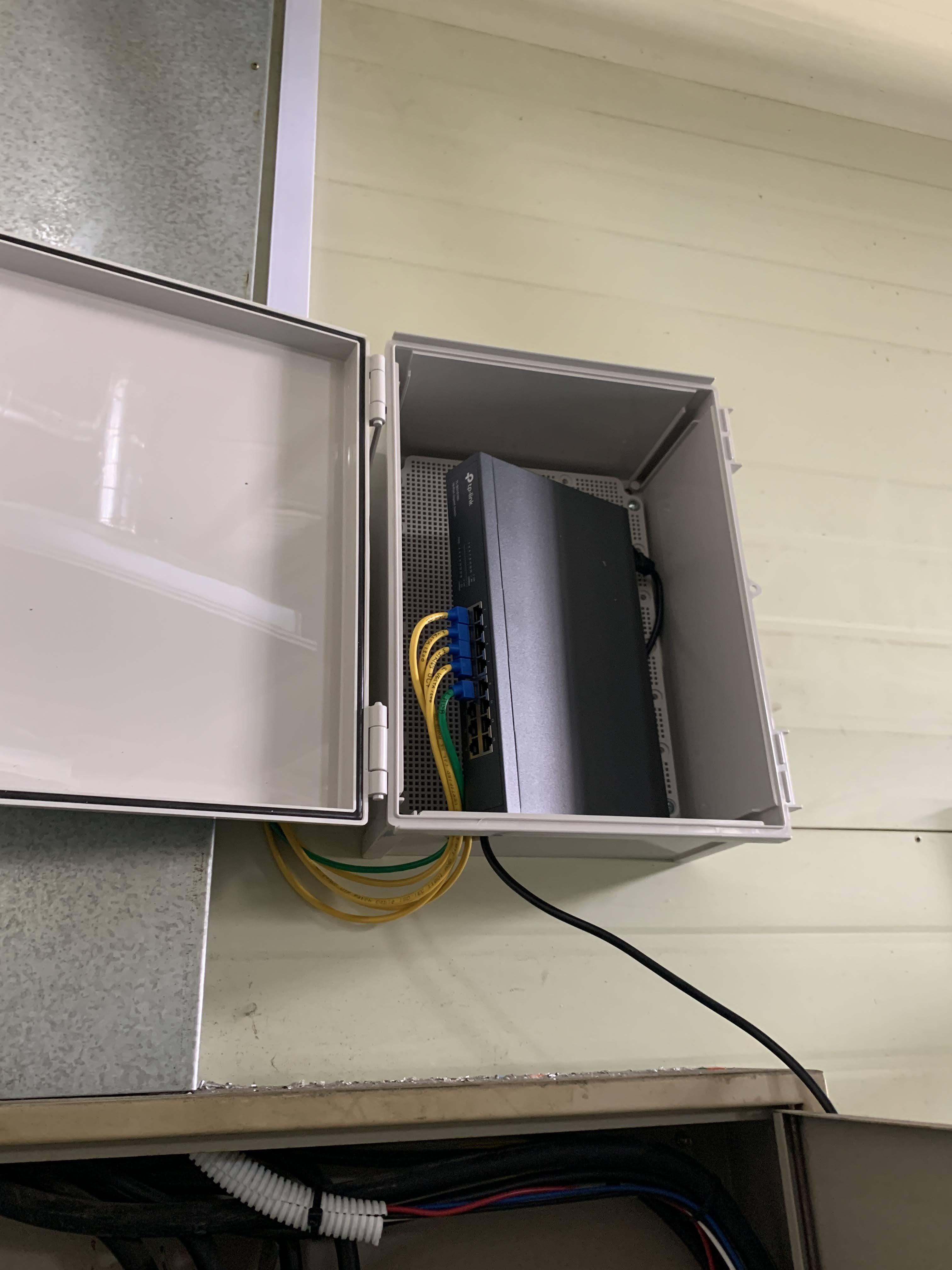공장 특성상 허브가 노출되면 접점에 문제가 있으니 화이박스로 커버를 만들었습니다.