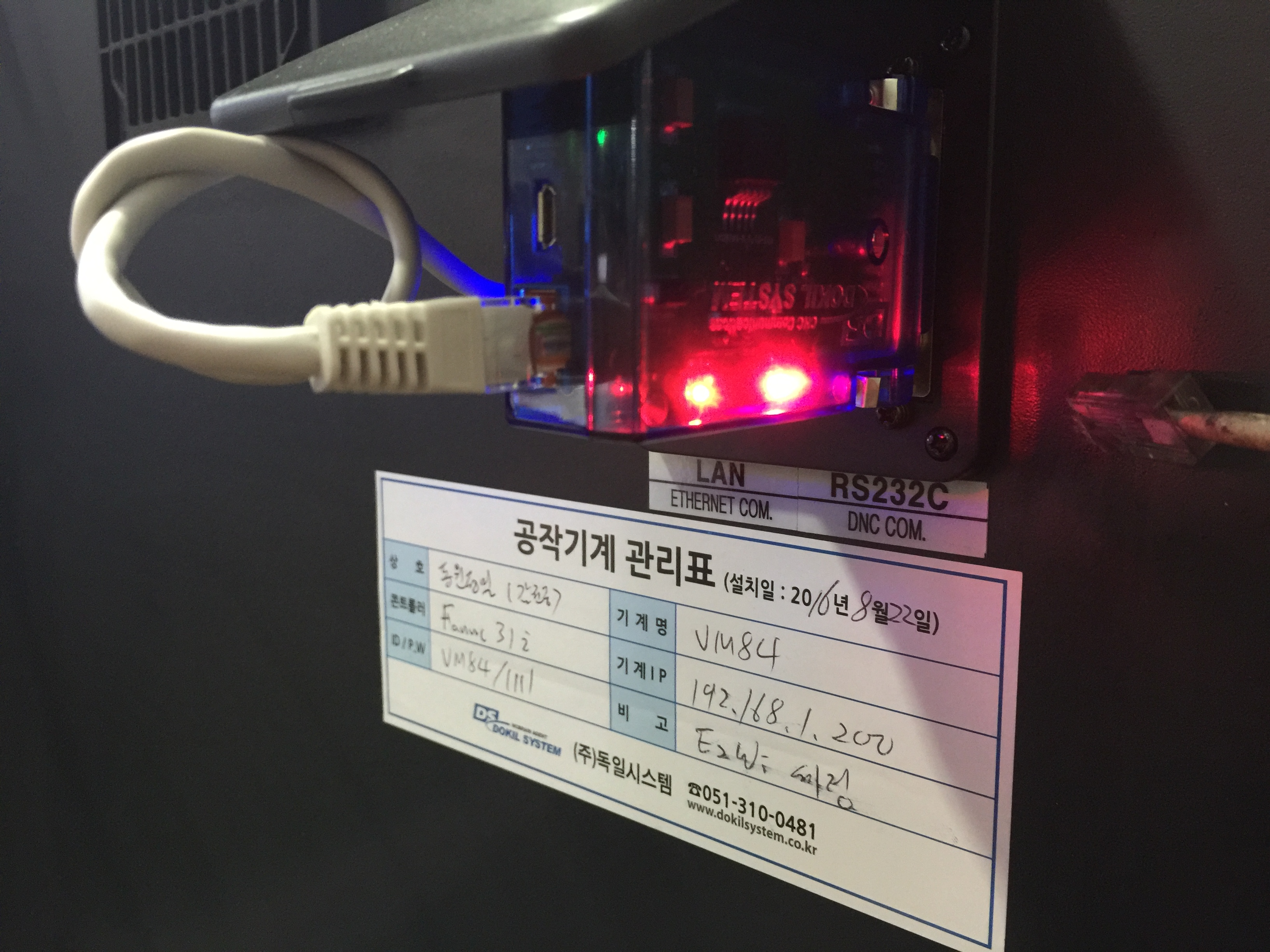 PC기반 콘트롤러라서 랜선이 들어갈 틈이 없어서 필름타입 랜선을 이용하여 설치한 사례