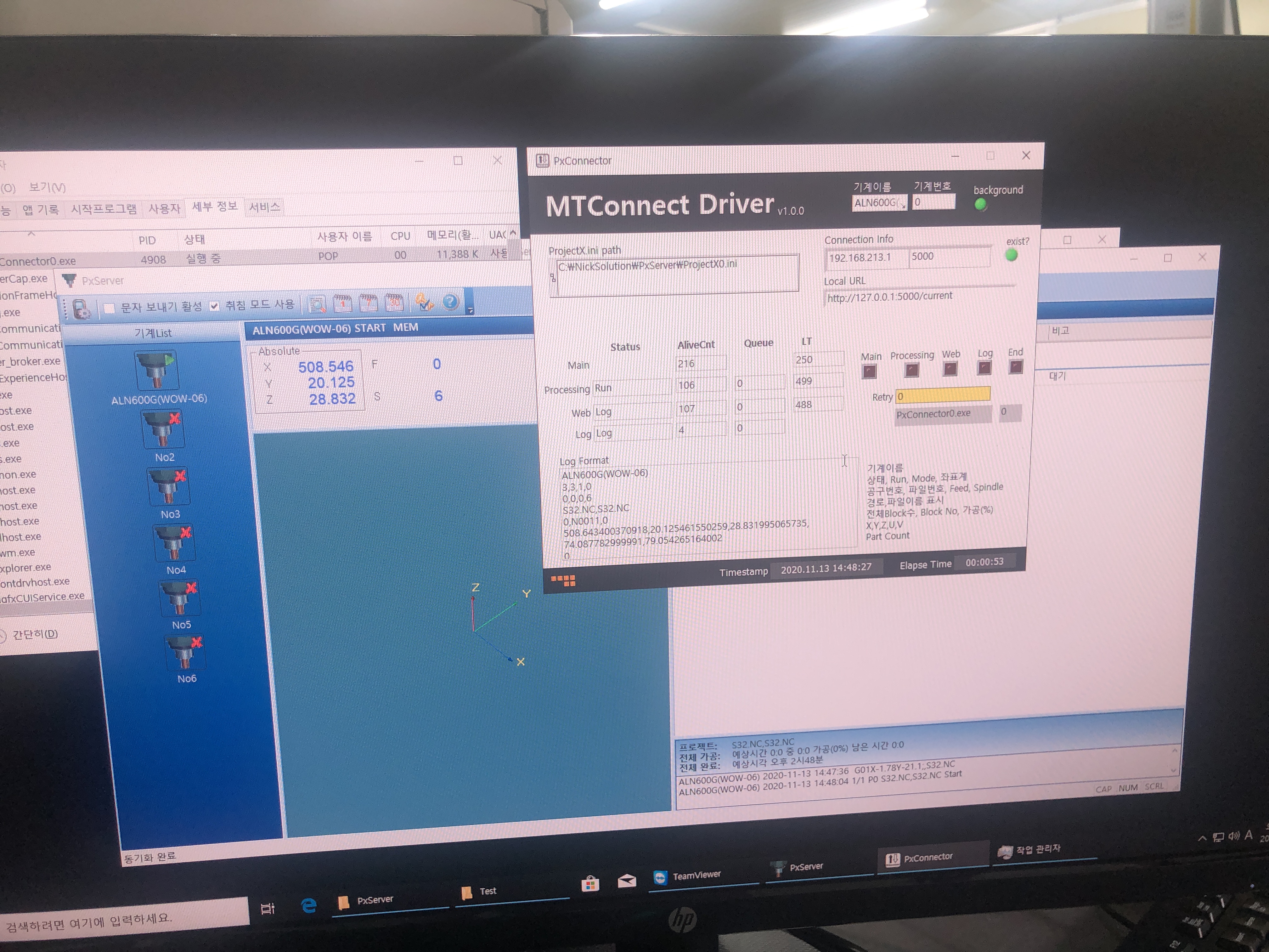 지멘스 828D와 840D는 네트워크를 통해서 장비상황들을 모니터링이 가능합니다.
