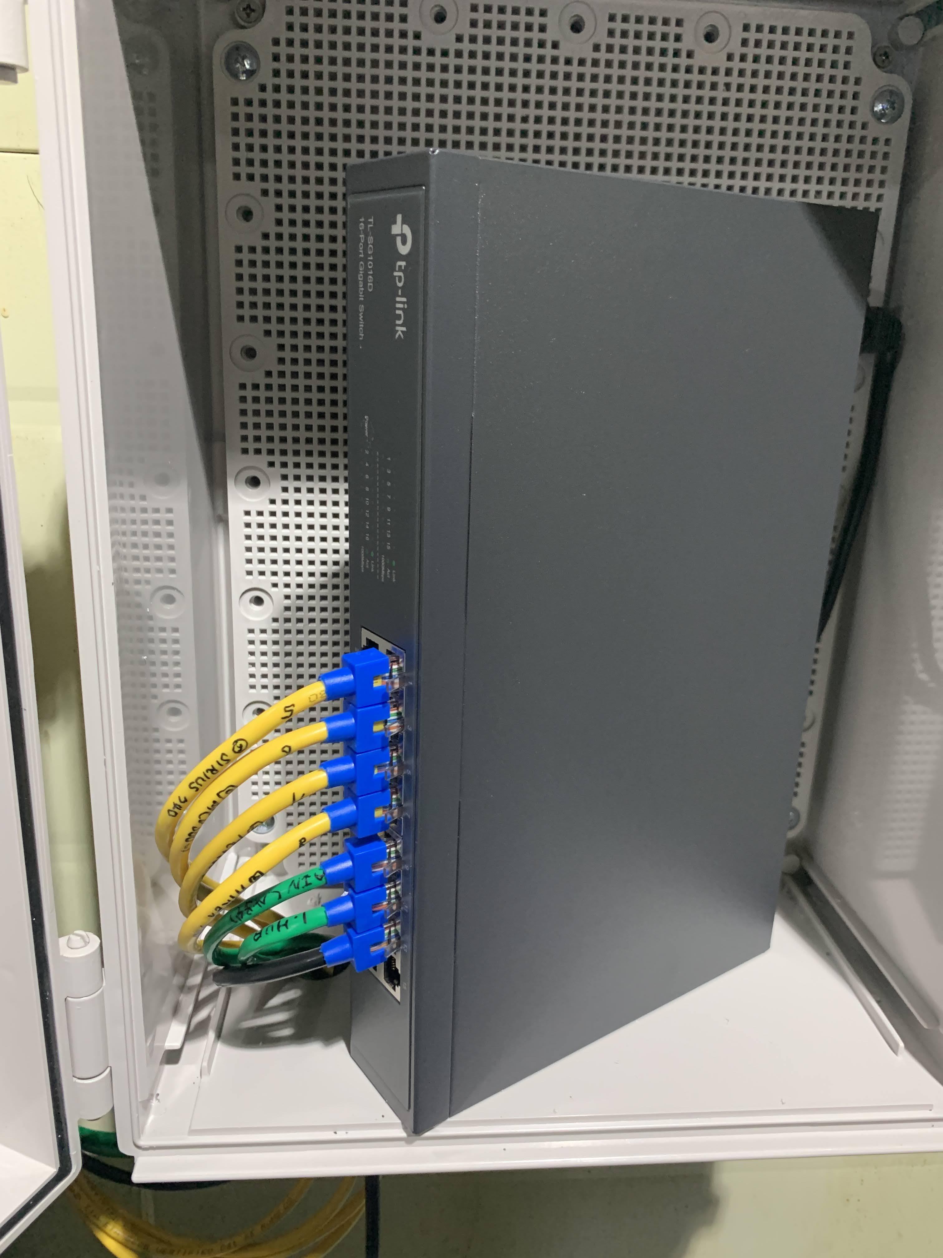공장 특성상 허브가 노출되면 접점에 문제가 있으니 화이박스로 커버를 만들었습니다.